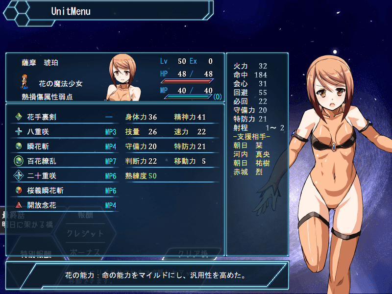 攻撃技も一応持っていて決して弱くはないのだが、琥珀がMPを消費して攻撃するよりもほかの味方に開放念花をかけてダメージを与えてもらった方が強いことがほとんど。