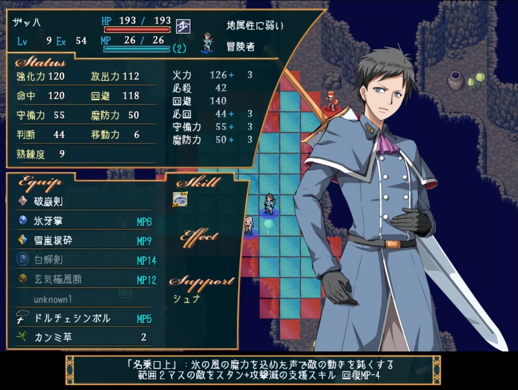 スキルは2マス以内にいる魔法を使えない敵ユニット等をスタンにする【名乗口上】。