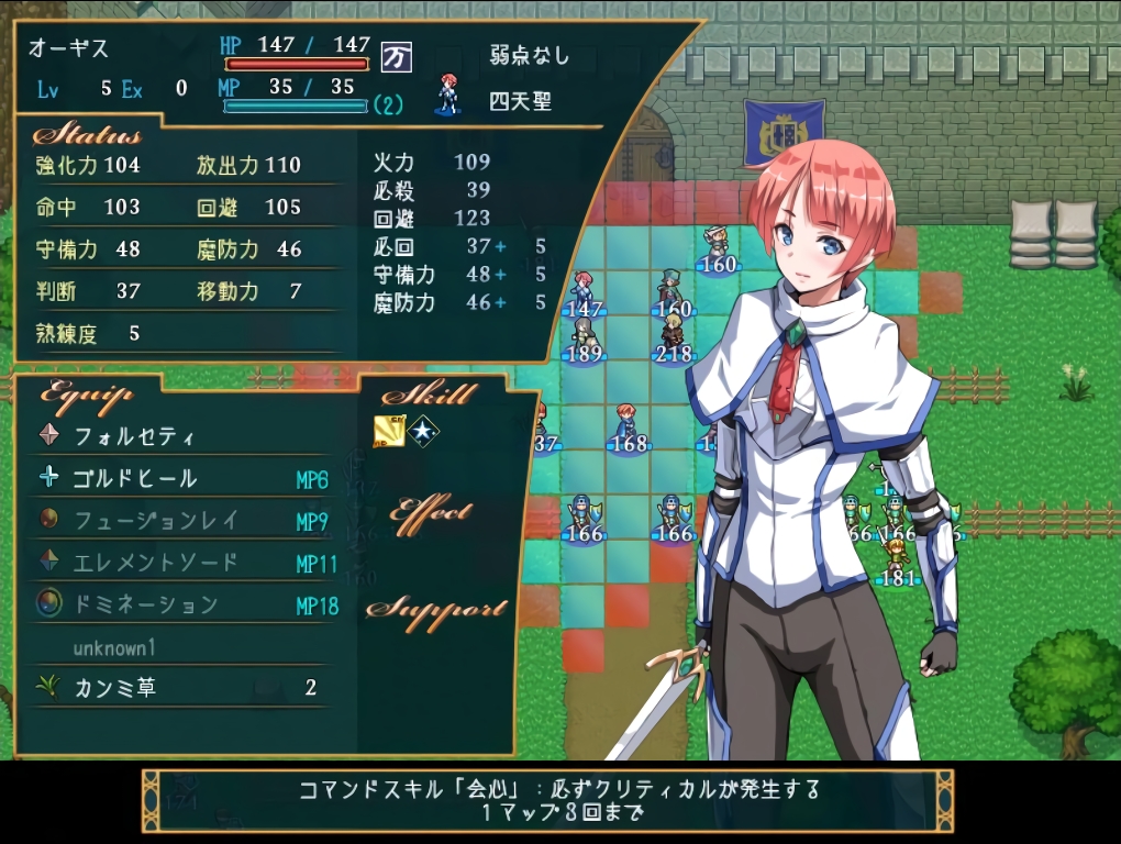移動力を上げる技が無いに等しいこのゲームで移動力上昇は率直に言って強力な効果であり、打ち漏らした敵をオペラが処理した後もすぐに前線に追いつけるようになる。