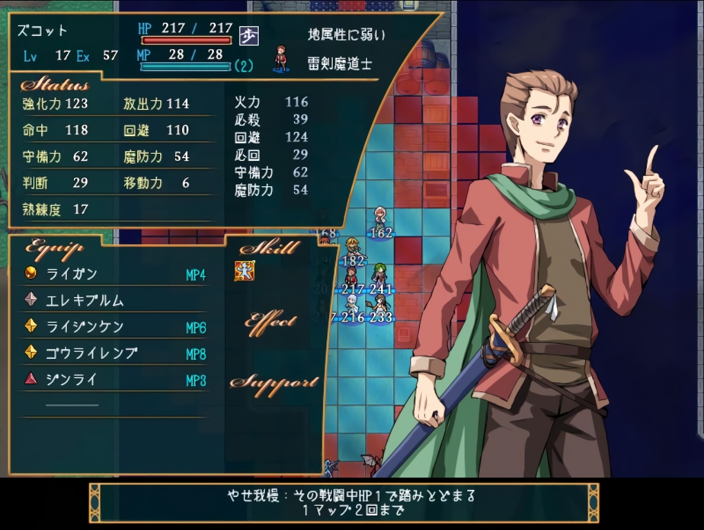 まぁストームエペは射程が長く範囲が3×3という珍しい範囲攻撃なのだが、MPが低めなストラでは今のところ有効活用するのは難しい。