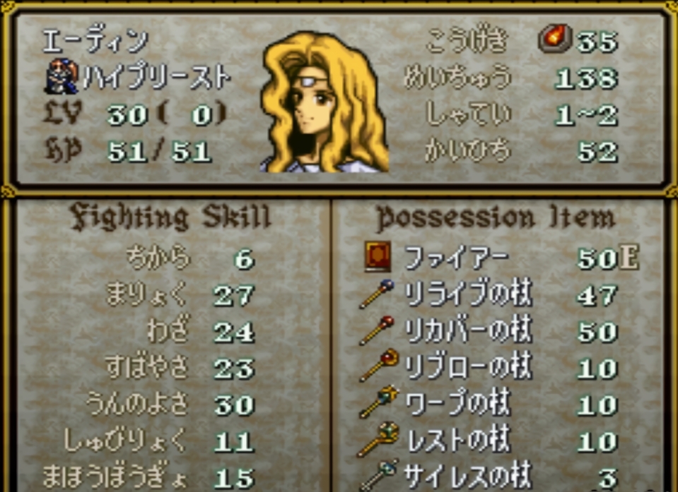 フィンの強みである幸運の成長率の高さはエーディンのウルの血でしっかり補強されるので強みは生きない、そもそも幸運がこのゲームでは死にステータスに近い。