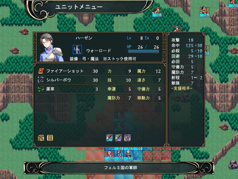 この辺りから弓に特効があるグリフォンナイトが増えてきたり、射程4の弓が売られるので弓で戦う機会も多くなる。