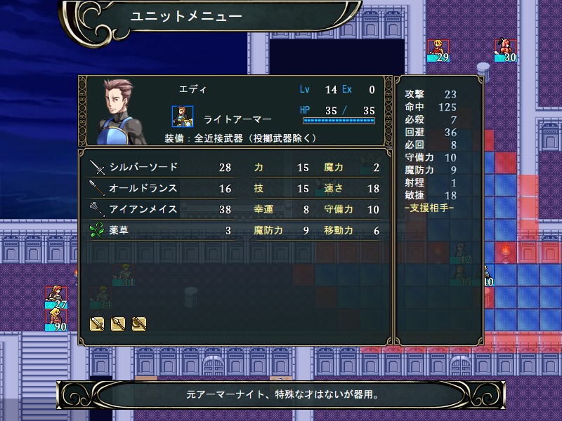ライトアーマーという兵種の割には壁役としても、攻撃面でも心許ない性能なのはネタキャラとしての宿命なのだろう・・・