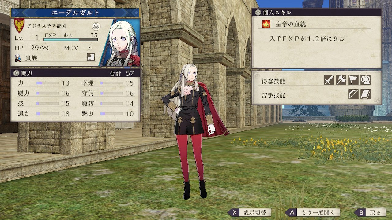 第2部からは専用職になり、成長率のバランスも良くなるのでそこまでの間にどのステータスを上げておくかでエーデルガルトのユニットとしての評価は変わる。