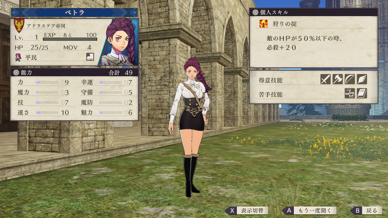 序盤は全員のステータスが貧弱でレベルアップでもそこまで伸びないので運用には苦労するが、ペトラは全然苦労しない。