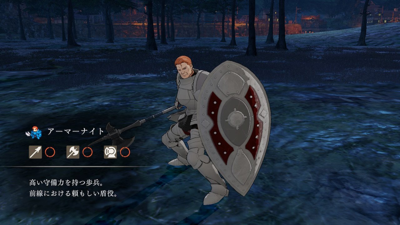 兵種の名の通り、敵の攻撃を受け止めるのが仕事なのだが、はっきり言って前作でアーマーナイトが強すぎた影響から、今回のアーマーナイトは大幅に弱体化している。