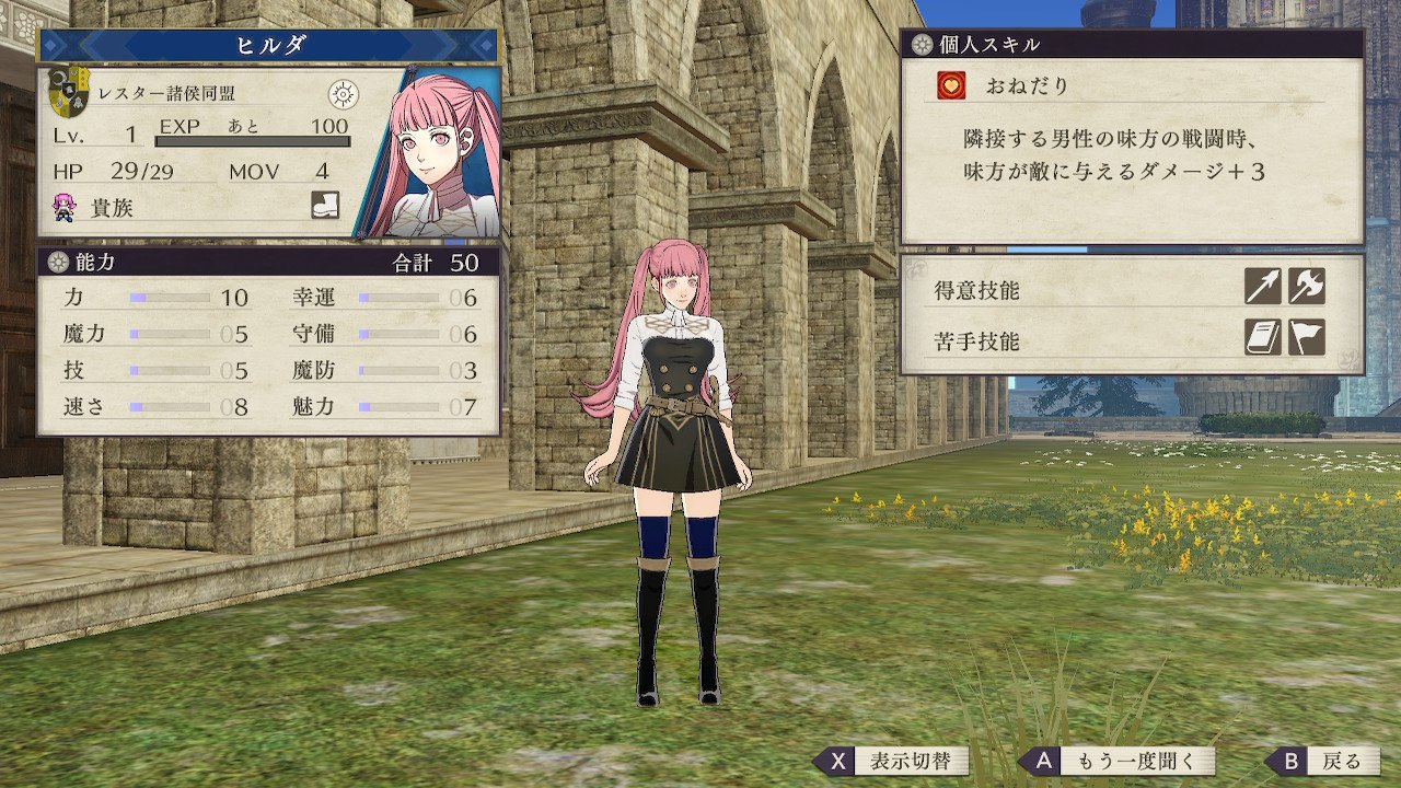 他にも魅力の成長率が50%とかなり高いのに指揮技能が苦手だったり、ヒルダが目指すドラゴンマスターなどの飛行ユニットは配備出来る騎士団が飛行系に限られていてバリエーションも少ない所も弱点と言える。