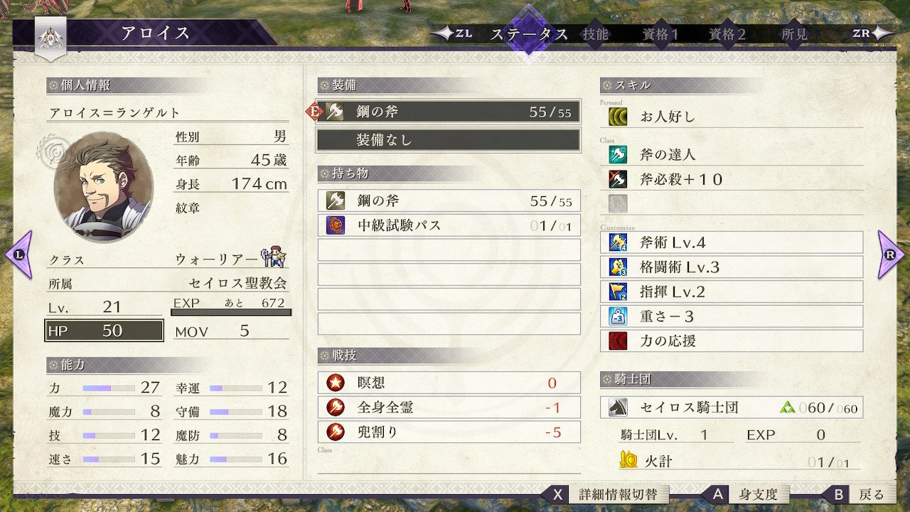 メインの斧と合わせてウォーマスターにも簡単になれる利便性はプレイヤーにとっては嬉しい限りだし、アロイスの弱点もカバー出来るしとカトリーヌに次いで使いやすい。