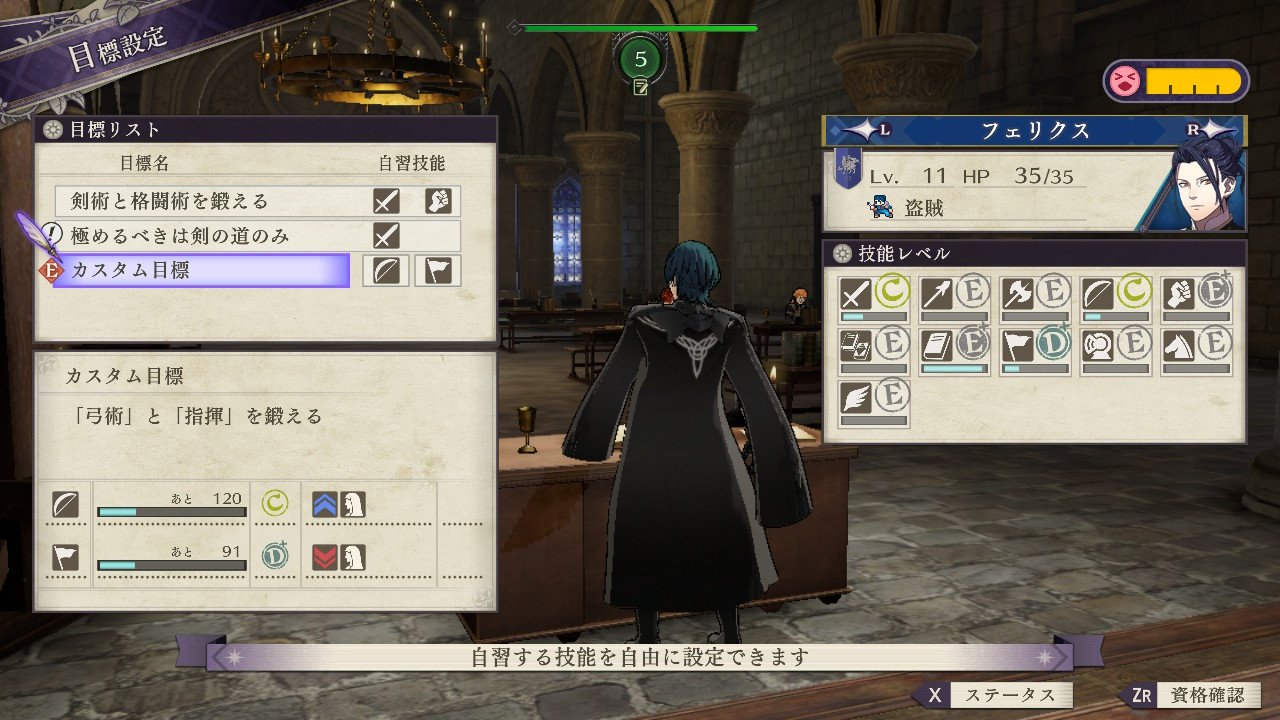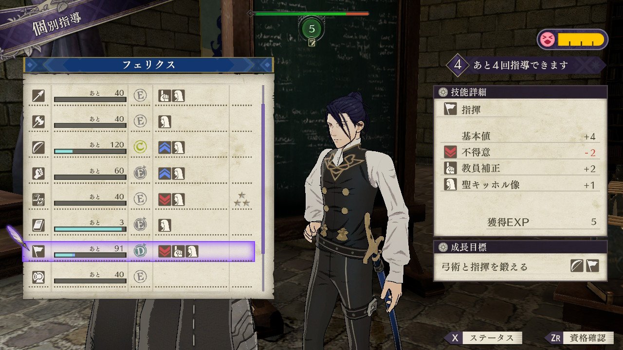 指揮が苦手なキャラは個別指導だと伸びが悪いので、目標設定で指揮を上げること。