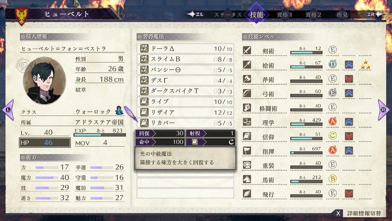 そのため、理学は得意だが信仰が苦手なヒューベルトのようなキャラの信仰技能もしっかり上げてライブを習得すること。