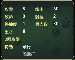 先ほどのノルマは3回攻撃というエグイ性能だったが、こちらは2回攻撃に収まったものの命中95・そしてなんと射程が3もあり一方的に攻撃が可能という別の意味でチート。