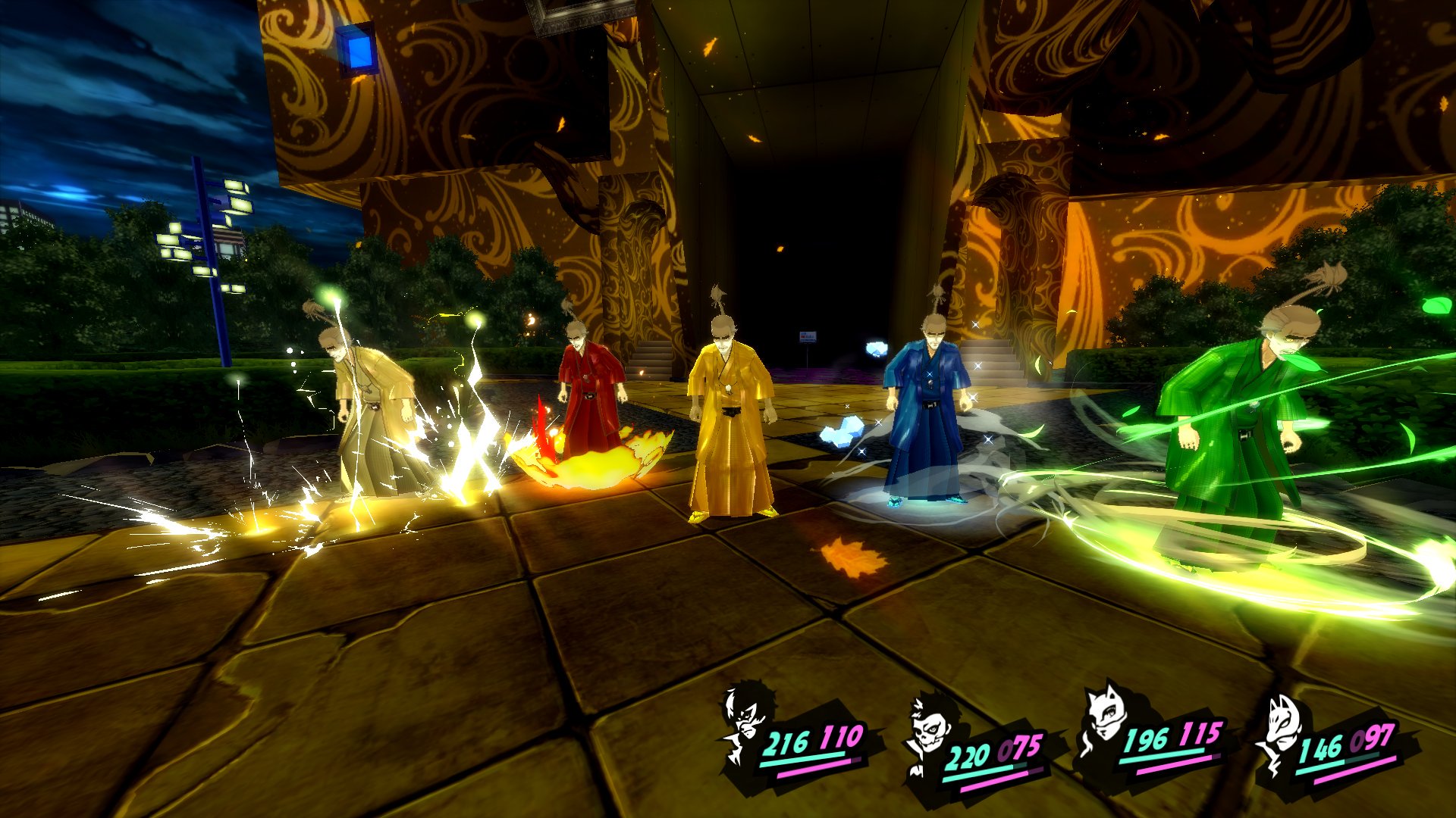 赤は氷結、青は火炎、黄色は疾風、緑は電撃がそれぞれ弱点属性なので綺麗に味方で繋いでいき、最後は竜司や祐介の全体物理攻撃でマダラメ本人に強力なダメージを与えよう。