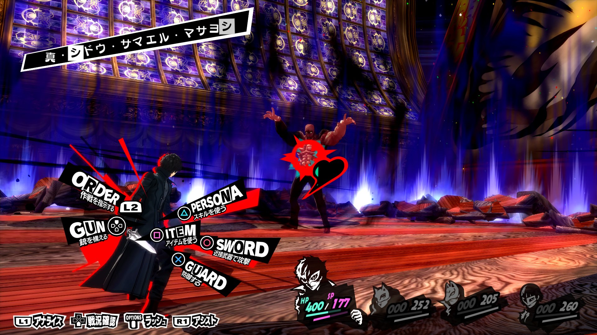 そしてP5Rでは最終形態の真・シドウ・サマエル・マサヨシのHPを1/4程度まで減らすと主人公との一騎打ちになるので弱点の無い強力なペルソナを用意しておくのがおすすめ。