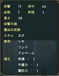 しかし、入手することが出来れば活躍することは間違いないが、30章の2つ目のマップは敵を全滅するのはかなり難しいので入手する難易度は天狼に匹敵する。