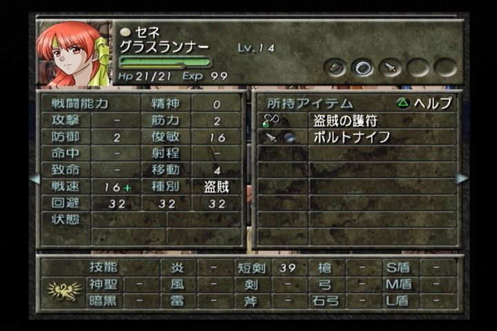 SRPGでいう盗賊ユニットで、お察しの通り俊敏以外の成長率は極めて悪い。