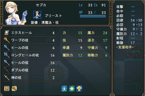と言っても、ステータスを見てわかるように回復に影響する魔力がもう上がらないのでレベルを上げる必要は無く、最後に習得する【是空】も戦わないからセプカにはいらない。