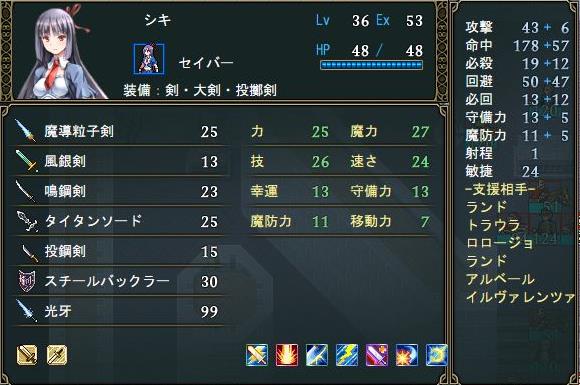弓の使い方としてはいつもはスチールボウで射程4の攻撃、状況に応じて碧鋼弓や桜晶弓などで射程5の攻撃を行い、威力は低いけどアーマー系の敵には破局弓を使っていこう。