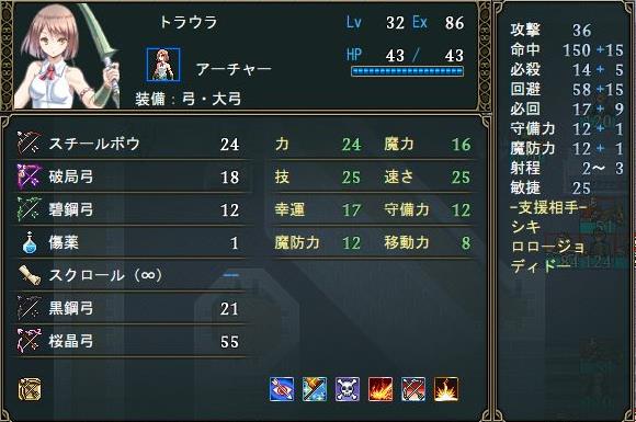 トラウラは【必中】のスキルがあるから命中率の悪い碧鋼弓を使っても問題が無い所も〇