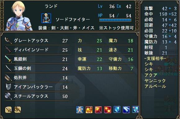 そのため、敵が多い時にはバックラーを持たせたり味方の壊れかけの武器をストックに入れておいて有効活用するなどランドにしか出来ない便利な戦い方をすることも可能。