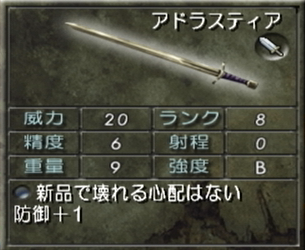 基本的に大剣は威力が高い代わりに精度が5のものが多かったのが、アドラスティアは威力も精度も強度も優秀な大剣となっている。