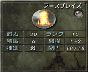 しかし炎魔法の中では精度が6と地味に低いので、エニードの炎技能が20になったくらいから使っていくのが理想といった感じ。