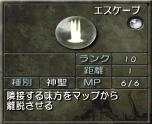 そしてこの手の魔法のお約束でもあるエスケープの効果を自身には使えないので、オルウェン以外のユニットにはほぼ必須アイテムである帰還の魔石を持たせておくこと。