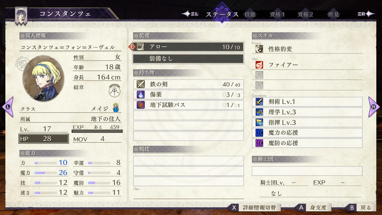 コンスタンツェの持ち味である長射程のサンダーストームや補助に役立つレスキューだけではどうやっても基礎成長率の低さを覆すことは出来ないだろう・・・