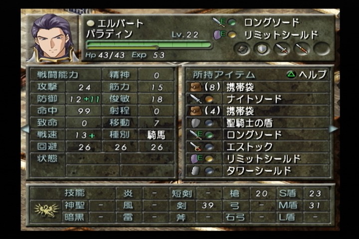 攻撃性能もナイトソードを持たせれば十分すぎるしM盾を装備させていれば致命傷になる攻撃は避けられるので、どんな場面にも対応出来るエルバートはとても心強い。