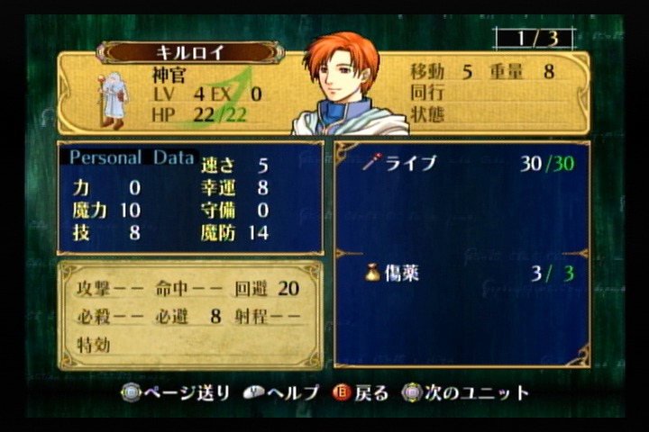 しかし、のちに加入するミストの存在や魔法ユニットが賢者になれば回復が出来るようになるので、クラスチェンジするまでは杖しか使えないキルロイは徐々に使いにくくなっていく。