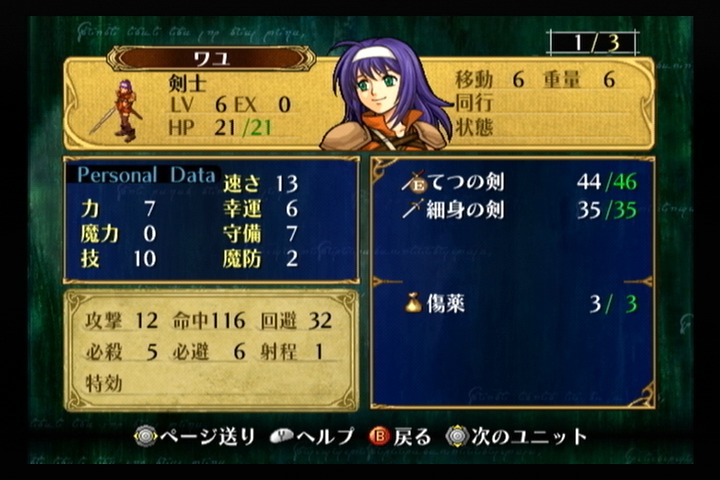 他にも、ワユは力が上がるまでは重さで攻速が落ちるはがねの剣の使用は控えるのが無難、はがねの剣は持たせておくだけで良い。