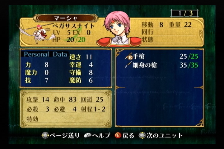 これまでの技・速さ・魔防に特化していたペガサスナイトのイメージとは違い、HP・力が伸びやすいどちらかと言えば前衛向きのユニット。