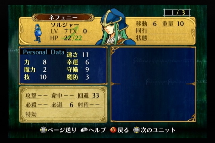 そしてチャップと同じ民兵なので加入時期の割にはレベルが低く、武器である槍技能も最低のEなのではがねの槍を持つことが出来ない。