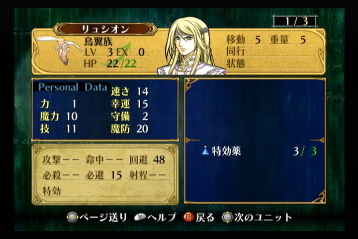 特に難易度マニアックだと回復が追い付かない場面が多いのでリュシオンで傷ついた味方を回復させられるのはとても便利(ここでも再移動が出来る騎乗ユニットが強い)