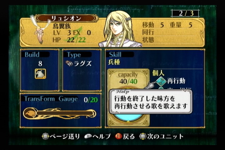 性能の所でさんざん語ったように味方を再行動させる時点で強力、そして化身時はリュシオンに隣接しているユニット4人を再行動させられるのでさらに効果が強力になる。