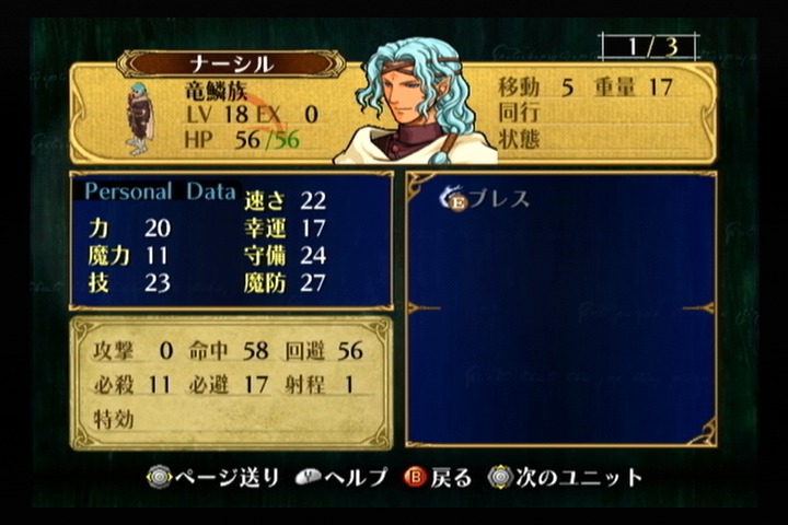 初期レベルと初期ステータスが完成されたナーシルに対してイナは初期レベルが低く、育てがいのあるユニットになっている。