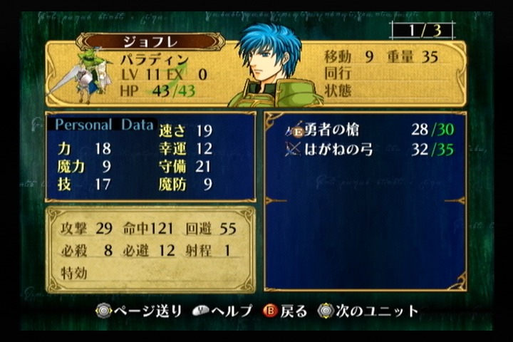 成長率は剣士系とは思えないほど高水準なので育てれば強いはずだが、初期ステータスの貧弱さと蒼炎の軌跡では不遇を被っている剣士なのでその可能性は見事に砕け散る。