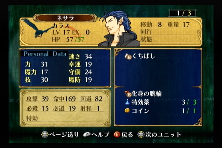 3人いるラグズ王族の中では速さに重きをおいているのか34もあり、全ての敵に対して追撃が可というのがネサラの特徴。