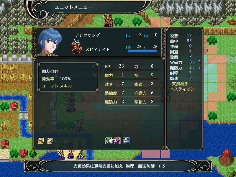 アレクサンダがしっかり成長した後も壁役を任せられる防御力になるので使い方の幅が広がる、何気に守備・魔防+3以外に普通の支援効果が乗る所も個人的に評価点。