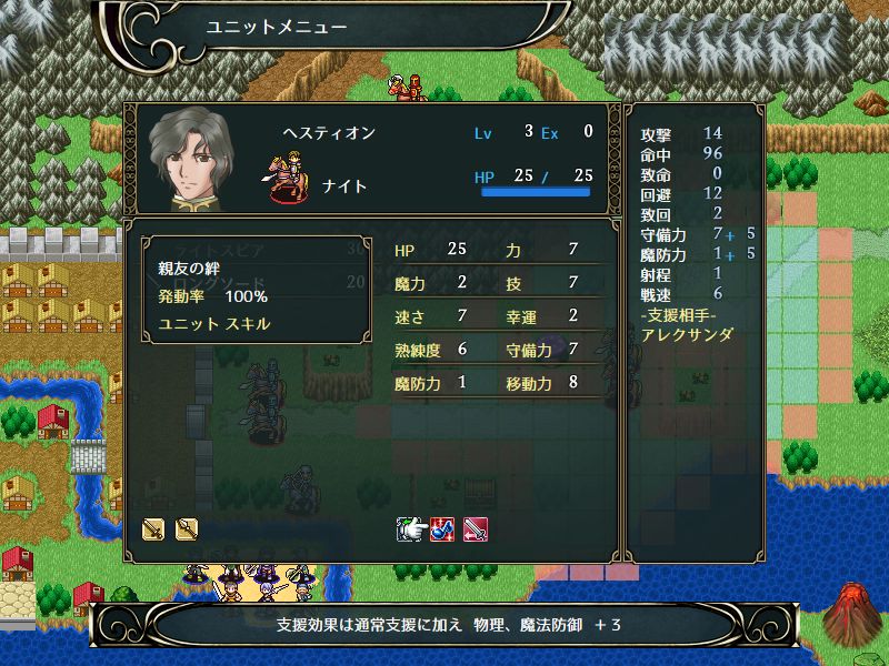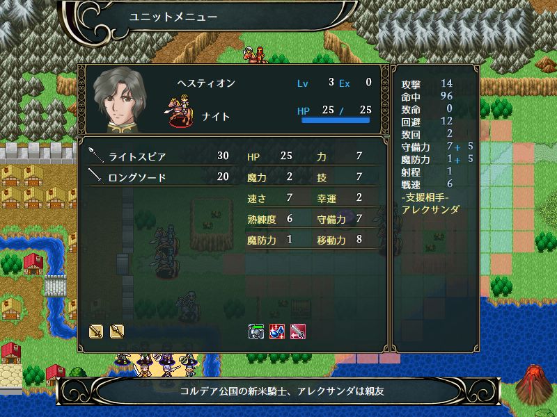 ヘスティオンも序盤は槍だと戦速3を確保するのは難しいが、アレクサンダと違って剣の選択肢もあるので力と速さがある程度上がるまでは剣で戦っていくのが無難。