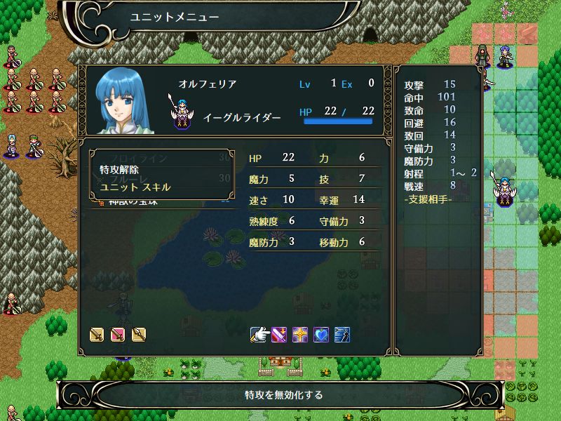 エトワールは歩兵ユニットで剣と杖を使える珍しい兵種、オルフェリアは下級職で【素質】があるのでレベルを自由に上げられる。