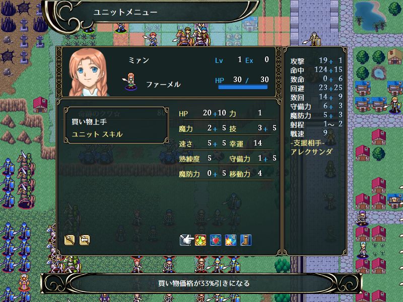 理由は20章という終盤からしかこのスキルを使えないこと、そして1番このスキルを生かしたいマップが20章でミァンが買い物に行くことが不可能に近いという2点から。