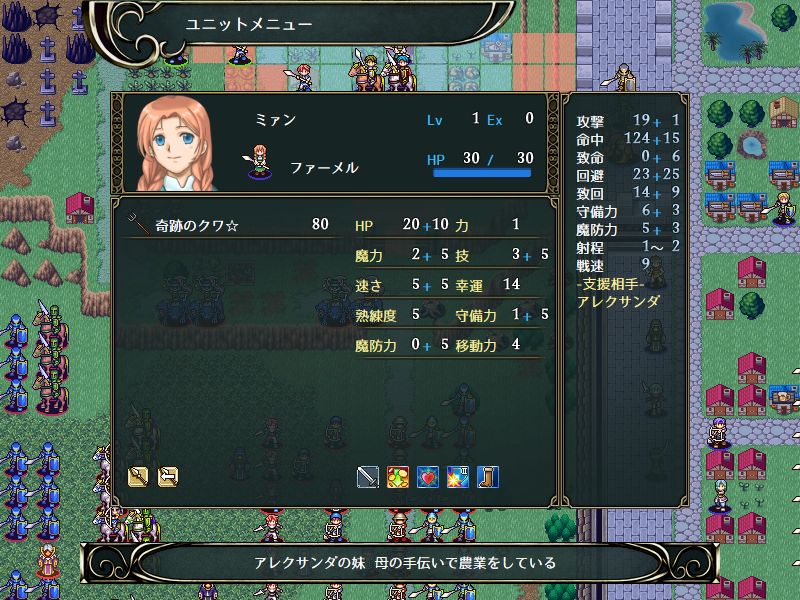 PS:ミァンのステータス画面に書いている「アレクサンダの妹、母の手伝いで農業をしている」の一文を見ると心が暖かくなります。